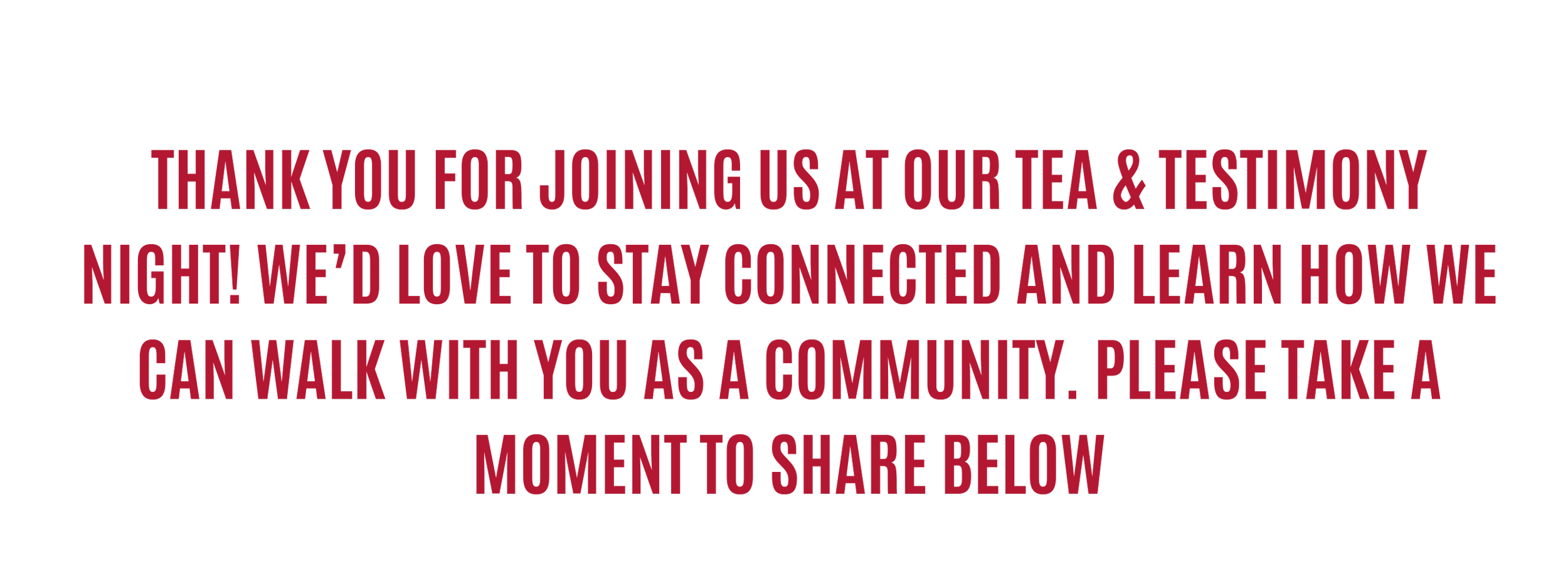 Name * First Name Last Name Email * Phone (###) ### #### Is there a dream, project, or business you’re currently working on? * Is there an area where you’d like support or growth? Faith / Spiritual Growth Relationships Finances Health / Fitness Business / Career Purpose & Calling Would you like someone from the Casa Grace community to reach out or connect you with support/resources? Yes, please Not right now What did you think of tonight’s Tea & Testimony? Option 1 Option 2 Is there something you’d love to see included at future gatherings? What was your favorite part of tonight’s event? Is there someone you’d like to invite or recommend for our next gathering? name + email/phone Thank you for being part of Tea & Testimony.We believe every story matters — and yours is one of grace, purpose, and transformation.💫 With love,By Casa Grace